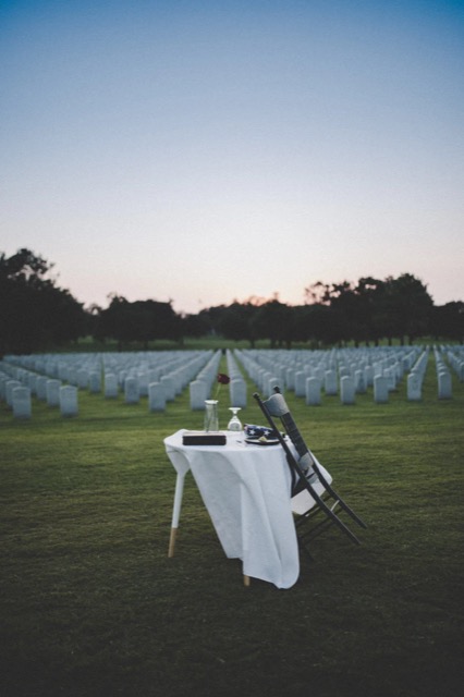 The Fallen Soldier’s table has a few basic elements, but each display is completely unique. It starts with a small table usually set for one, symbolizing the isolation of the absent service member. Its seat is empty to bring attention to the missing guest. The table is usually set close to, or within sight of, the entrance to the dining room. For large events, the missing man table may be set for six places representing each of the five armed services (Army, Navy, Marine Corps, Air Force, and Coast Guard), with the sixth symbolizing the civilians who died during armed conflict.